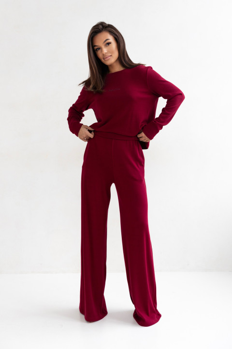 Stylowy i niezwykle wygodny komplet damski wykonany z miękkiej dzianiny. Składa się z luźnej bluzki o prostym kroju oraz szerokich spodni z wysokim stanem. Idealny wybór na co dzień- sprawdzi się zarówno w domu, jak i podczas spaceru czy spotkań ze znajomymi.