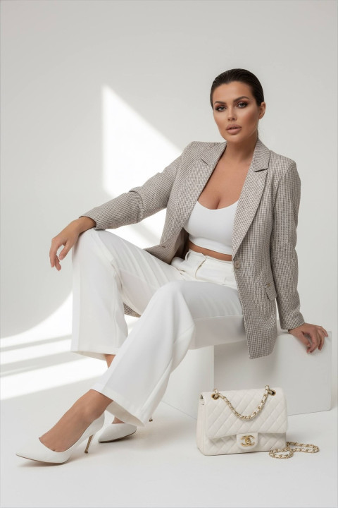 Świetnie komponuje się z jeansami i topem w stylu casual, ale równie dobrze wygląda w zestawie z materiałowymi spodniami czy sukienką.