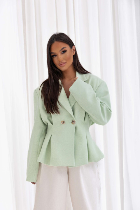 Elegancka marynarka o kobiecym, taliowanym kroju, który pięknie podkreśla sylwetkę. Model zapinany na dwa guziki, z delikatnie rozkloszowanym dołem i subtelnymi zakładkami, nadającymi nowoczesnego charakteru. Wykonana z wysokiej jakości tkaniny o przyjemnej w dotyku strukturze. Doskonała zarówno do eleganckich stylizacji z szerokimi spodniami, jak i w połączeniu z jeansami czy spódnicą.