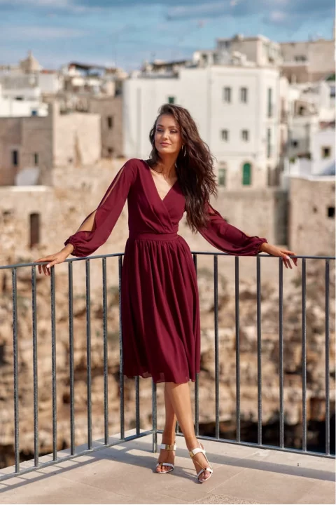 Sivney - sukienka rozkloszowana z kopertowym dekoltem długi rękaw